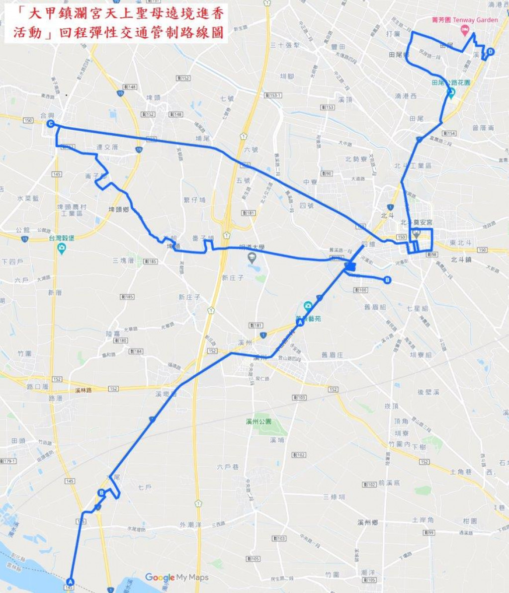 轉知彰化縣警察局北斗分局為維護115年4月23、24日「大甲鎮瀾宮天上聖母遶境進香活動」行經期間交通秩序,將視交通狀況彈性管制車輛。