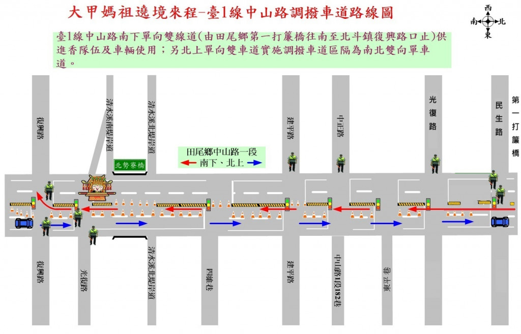 轉知彰化縣警察局北斗分局為維護115年4月19日「大甲鎮瀾宮天上聖母遶境進香活動」行經期間交通秩序,將視交通狀況彈性管制車輛。